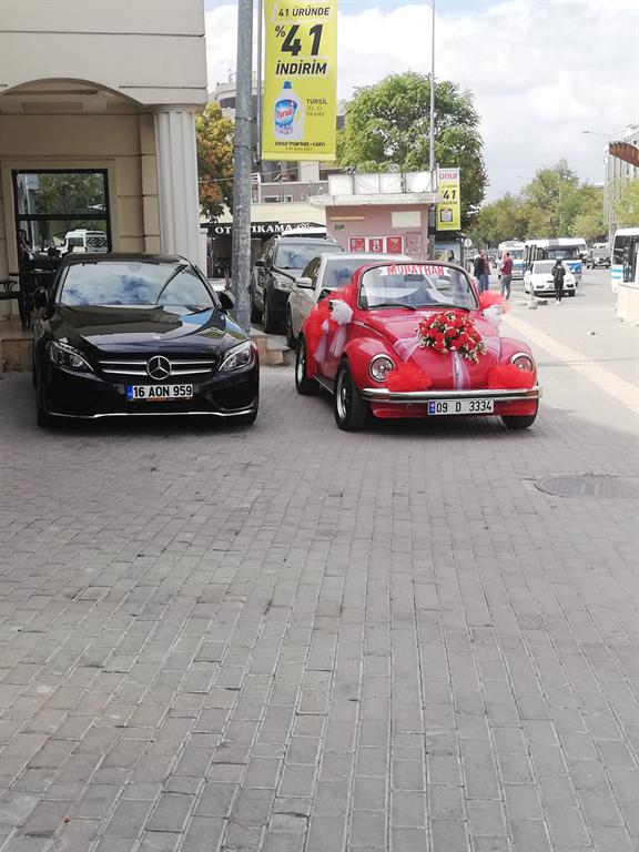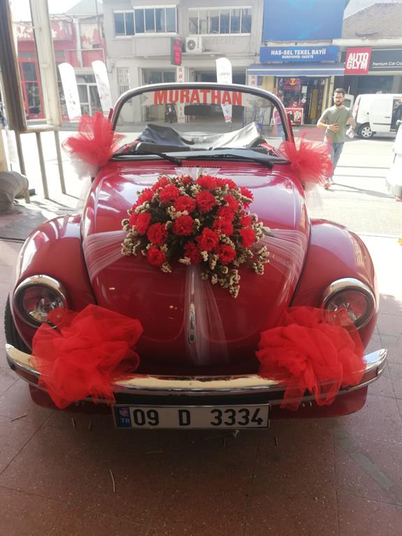 Aracımız ücretsiz şekilde gelin arabası olarak yapay çiçekler ile süslenir.