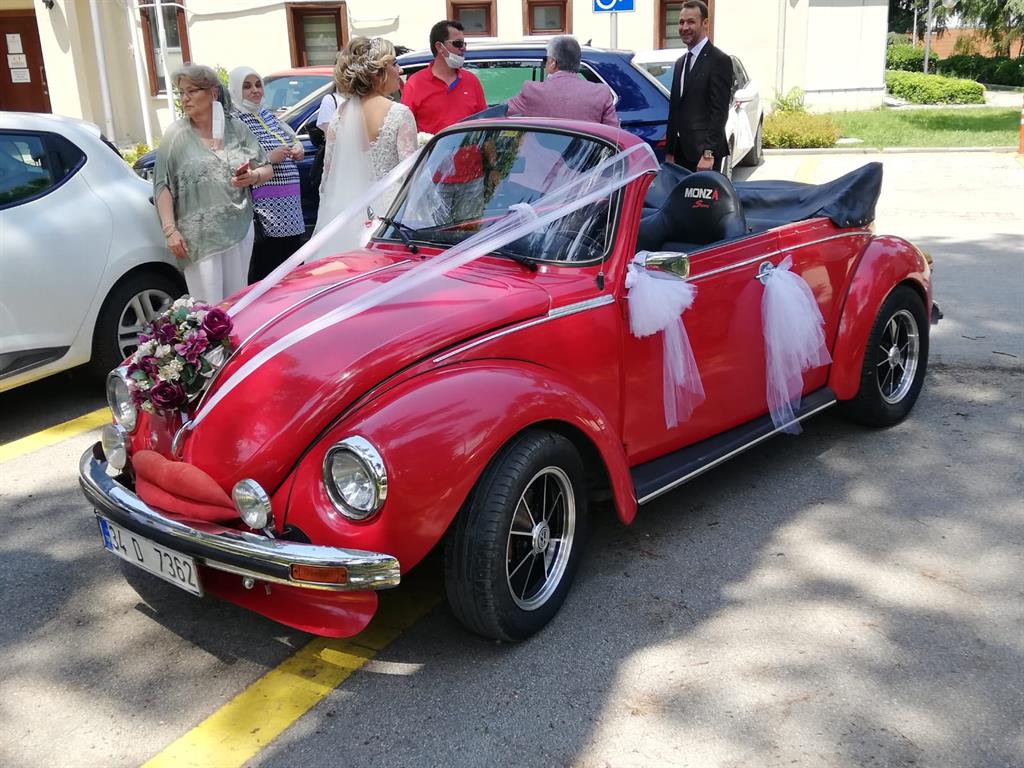 Bu gelin arabası vosvosumuz tam cabrio modeldir. Tavanı komple açılabilmektedir. Olumsuz hava koşullarında, üzeri rahatlıkla kapatılabilmektedir. Gelin arabası olarak kiralandığında, üstü komple açıldığında, çekebileceğiniz bir çok farklı poz fotoğrafa imkan sağlamaktadır.