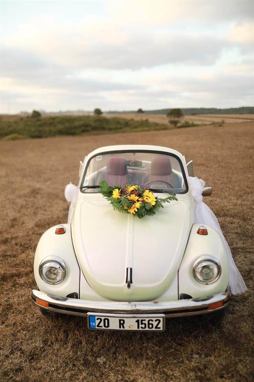Aracımız ücretsiz şekilde gelin arabası olarak yapay çiçekler ile süslenir.