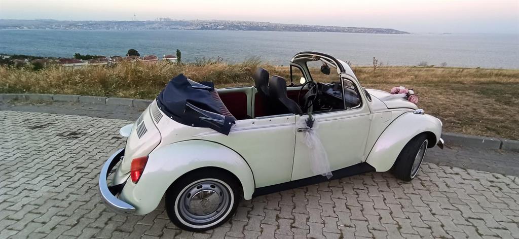 Bu gelin arabası vosvosumuz tam cabrio modeldir. Tavanı komple açılabilmektedir. Olumsuz hava koşullarında, üzeri rahatlıkla kapatılabilmektedir. Gelin arabası olarak kiralandığında, üstü komple açıldığında, çekebileceğiniz bir çok farklı poz fotoğrafa imkan sağlamaktadır.