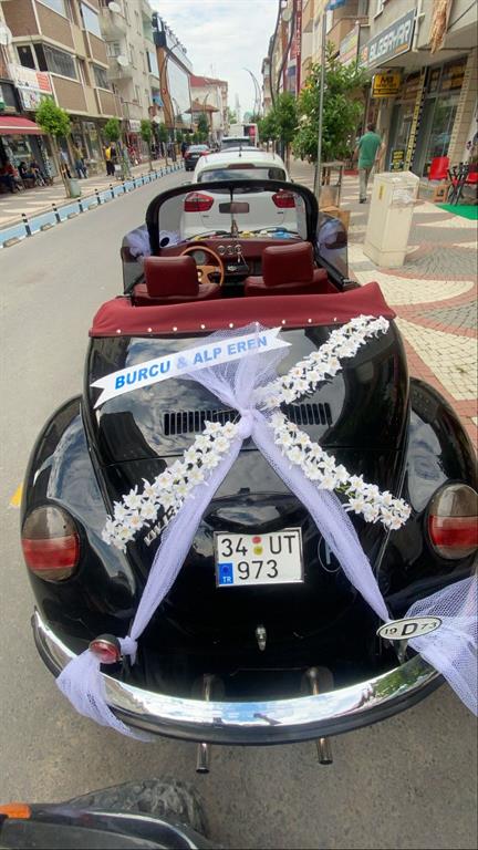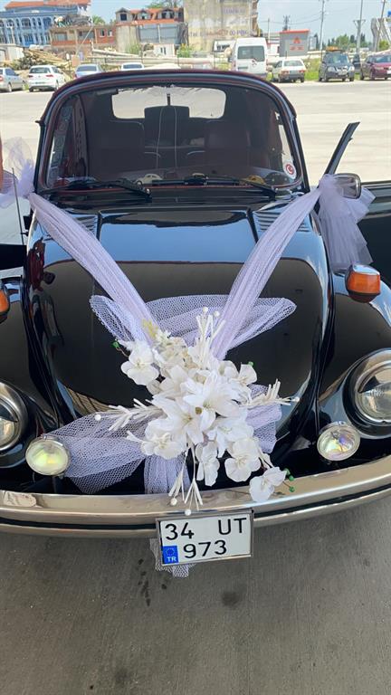 Aracımız ücretsiz şekilde gelin arabası olarak yapay çiçekler ile süslenir.
